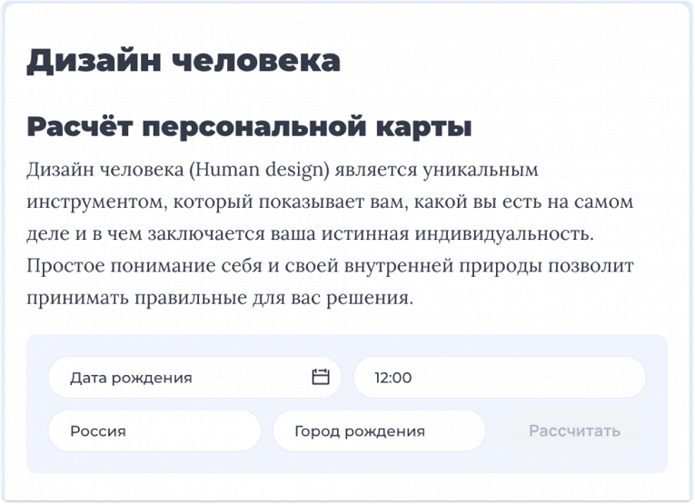 Ура, мы завершили редизайн нашего сайта. И обновили внешний вид “Дизайна человека” — сервиса по рассчету бодиграфа. Сейчас вы сможете быстро и легко рассмотреть свою личность будто под микроскопом — познакомиться с собой получше, узнать свои сильные стороны, а также понять, как сделать отношения крепче каната.